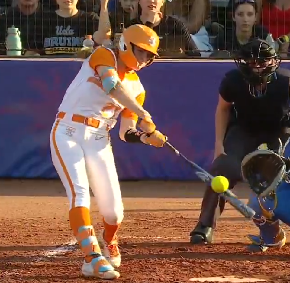 Taelyn Holley connects for a grand slam to blow the game wide open for the Lady Vols in the 11-0 run-rule victory over UCLA on Saturday